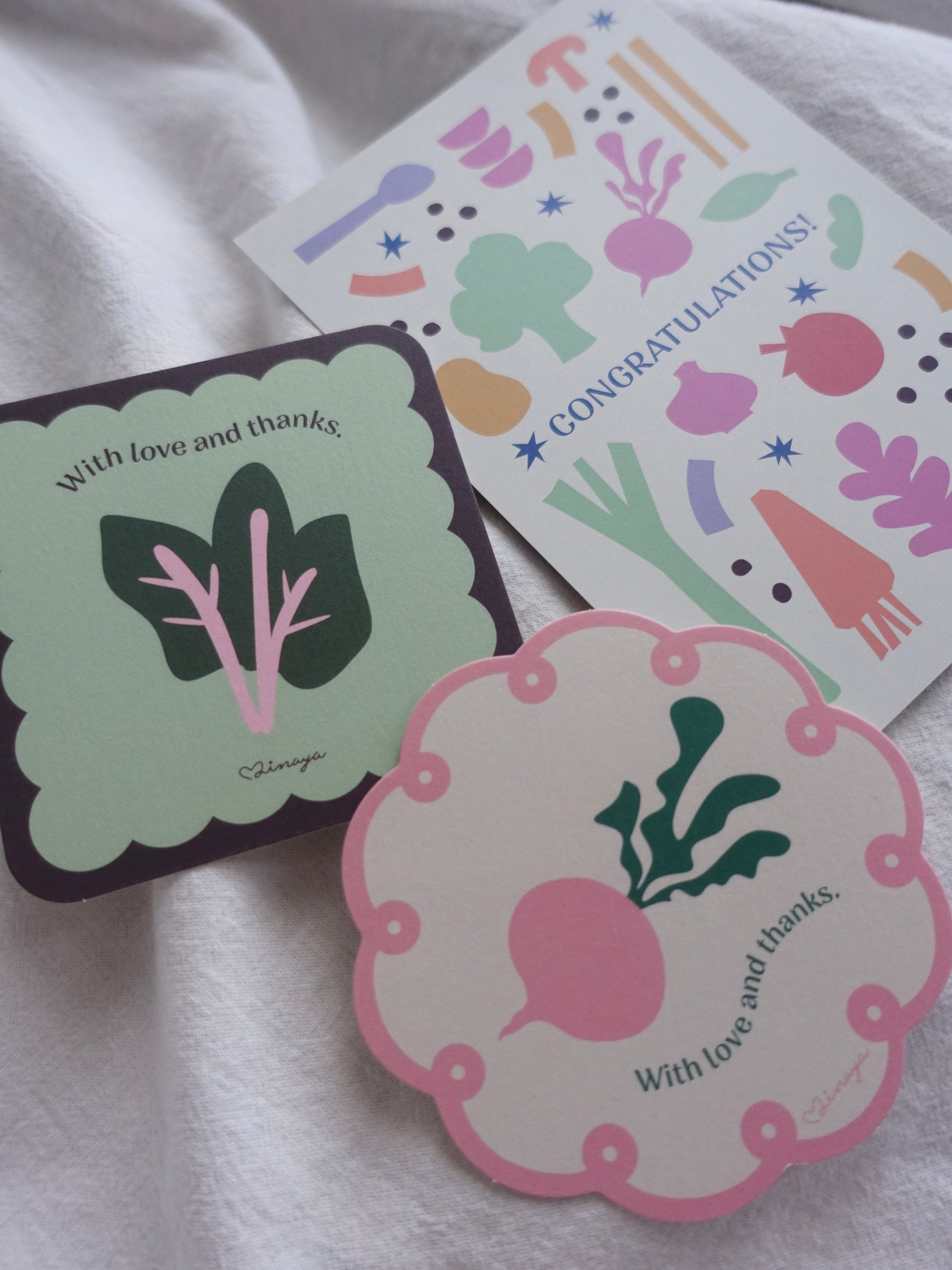 同封の美菜屋オリジナルのメッセージカードは3種類からお選びいただけます。