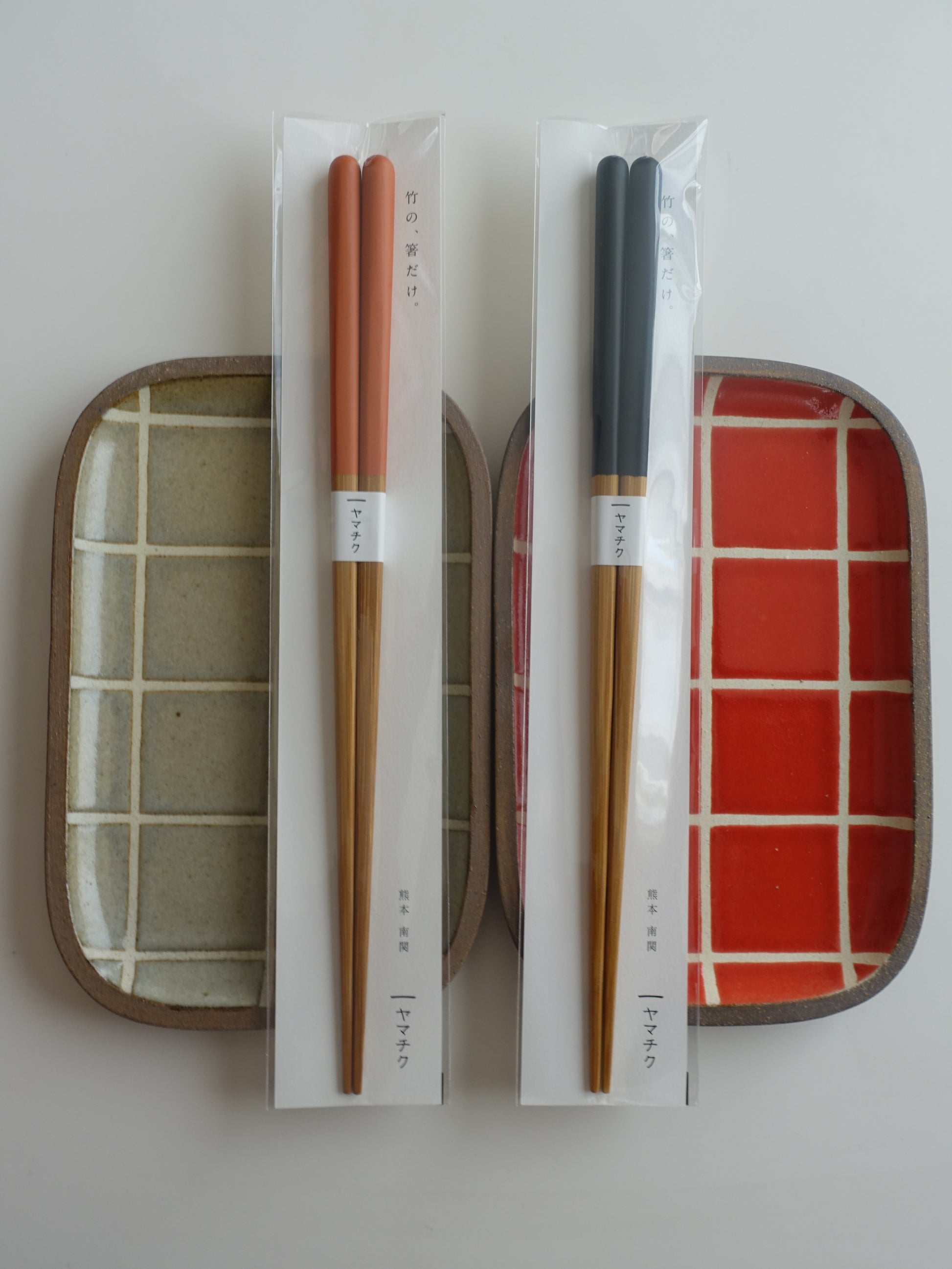・ヤマチク スス竹丸箸 2膳(ブラック・オレンジ)