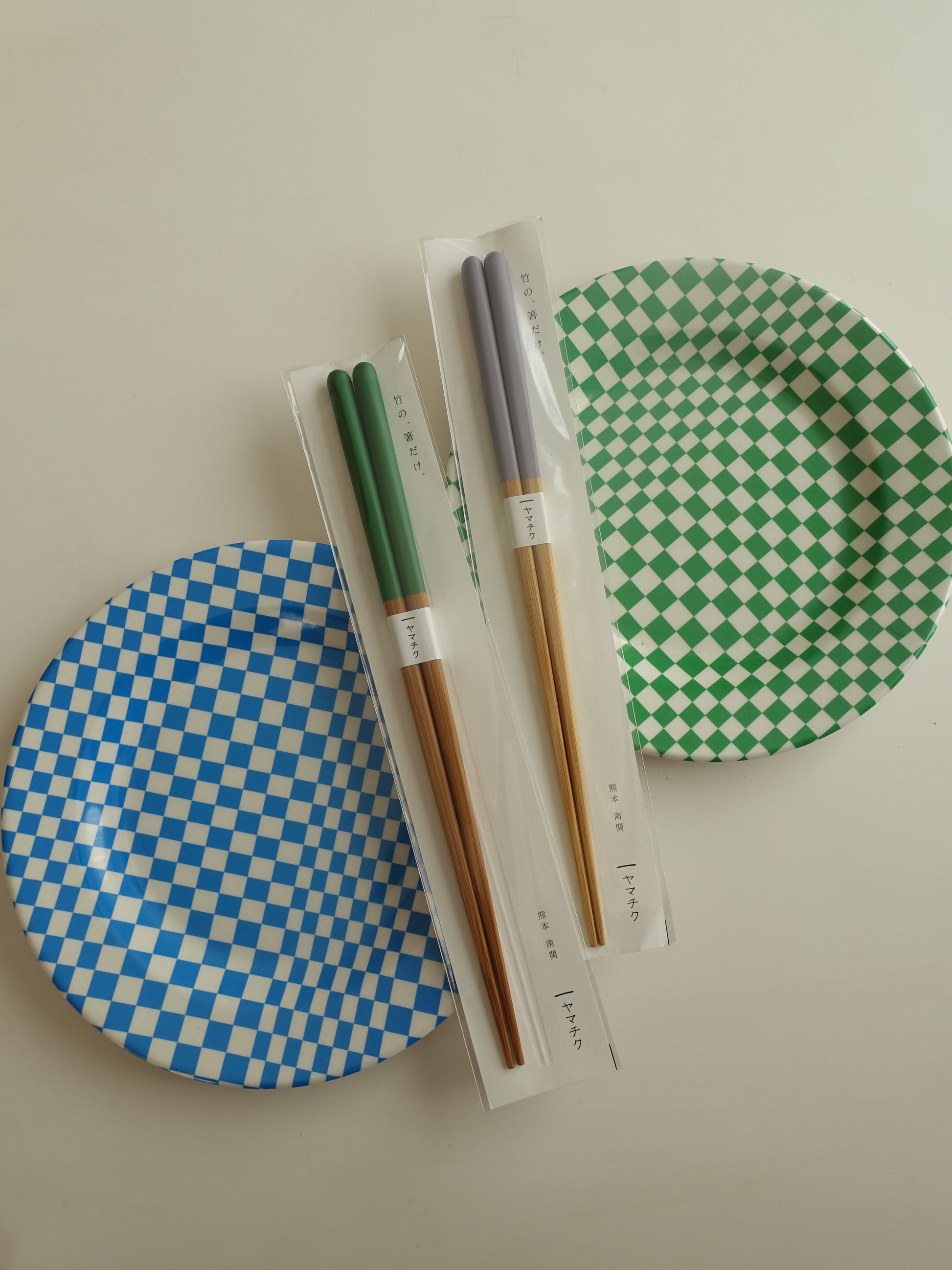 ・ヤマチク スス竹丸箸 2膳(パープル・グリーン)